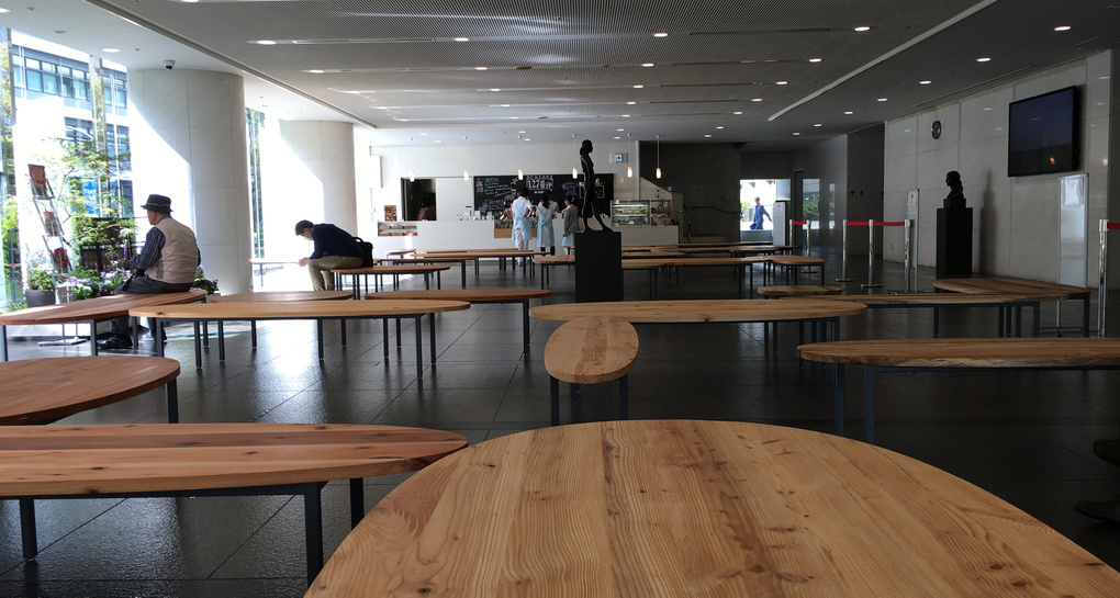 project : 神戸市役所市民ロビー 六甲山材のベンチ製作 /設計:中村竜治建築設計事務所