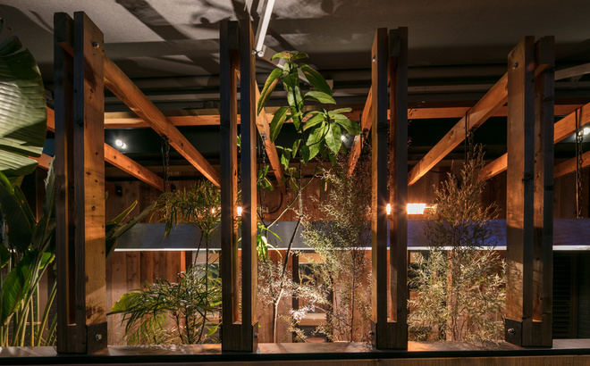 サーモウッド技術を用いた木材。1×8,1×10,2×10,2×12材を使って、テーブル天板などの家具用材から、壁面のはめ板、フローリング材などの内装材にカスタマイズ加工が可能です。店舗や商業施設でも大活躍中です。