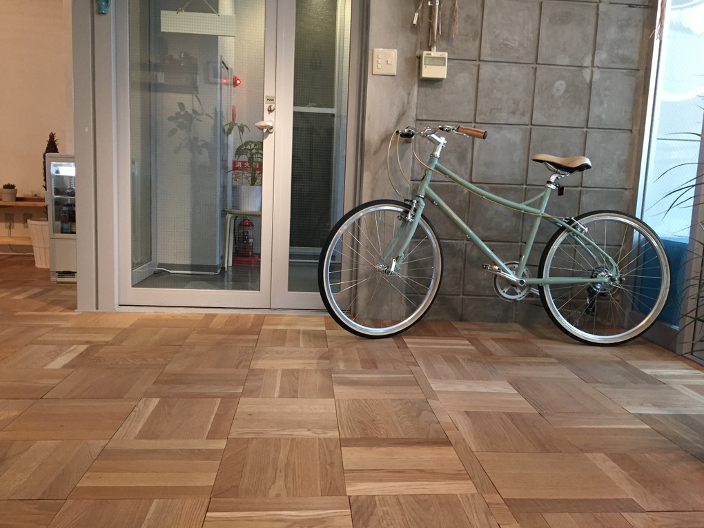 店舗やオフィスで大人気な楢のパーケット無垢フローリング、サンダー仕上しているのでもちろん住宅にも最適。