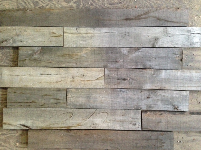 バーンウッド(広葉樹:オーク、ウォールナット、アッシュ、バーチ等)の混合材を組み合わせて、リユースした製品です。サイズも時期等によって変動します。都度お問合せ下さい。